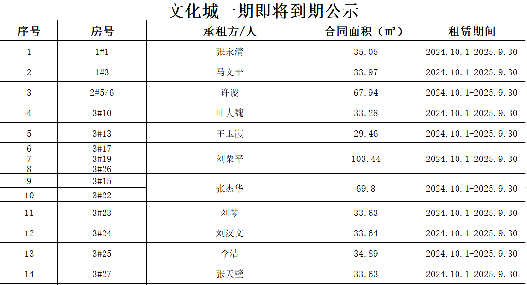 关于对城发集团·文化城部分即将到期房屋的公示(中区)